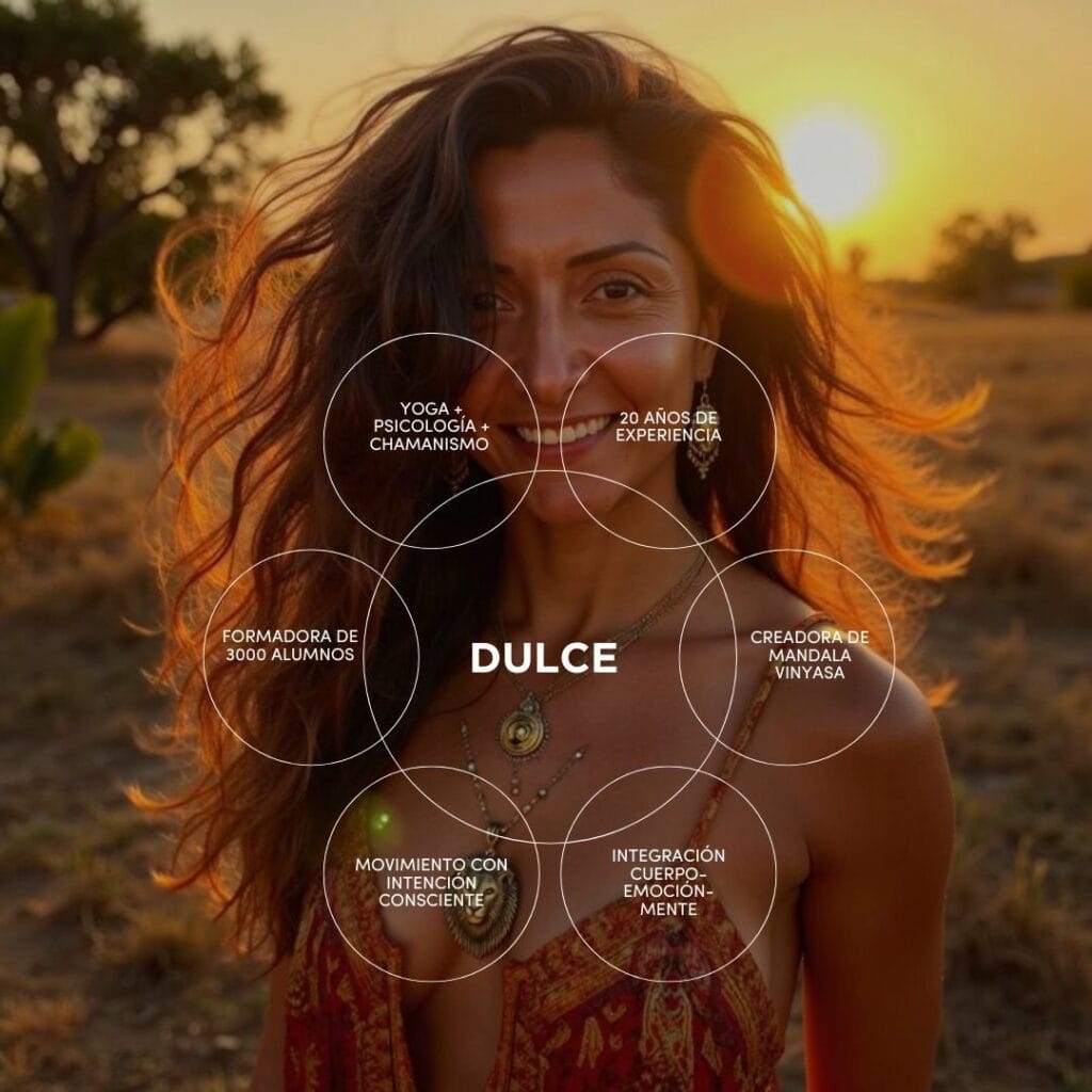 Con más de 20 años de experiencia y miles de estudiantes formados alrededor del mundo, Dulce ha desarrollado un enfoque único que honra el movimiento consciente, la sabiduría ancestral y la integración cuerpo-emoción-mente.